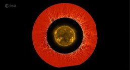 Di seguito il link al video dove il Sole è mostrato al centro, circondato da un anello che visualizza parte della corona solare ripresa dal coronografo Metis di Solar Orbiter. I dati mostrano cambiamenti nella luminosità della corona solare, che è direttamente correlata alla densità delle particelle cariche presenti al suo interno. Questi cambiamenti sono resi visibili sottraendo immagini consecutive di luminosità coronale scattate a due minuti di distanza l'una dall'altra. Le regioni rosse non mostrano alcun cambiamento, mentre le regioni bianche e nere evidenziano cambiamenti positivi e negativi nella luminosità. Questo rivela come le particelle cariche del vento solare all'interno della corona si muovano in modo caotico e turbolento. Crediti: ESA & NASA/Solar Orbiter/Metis & EUI Teams e D. Telloni/INAF